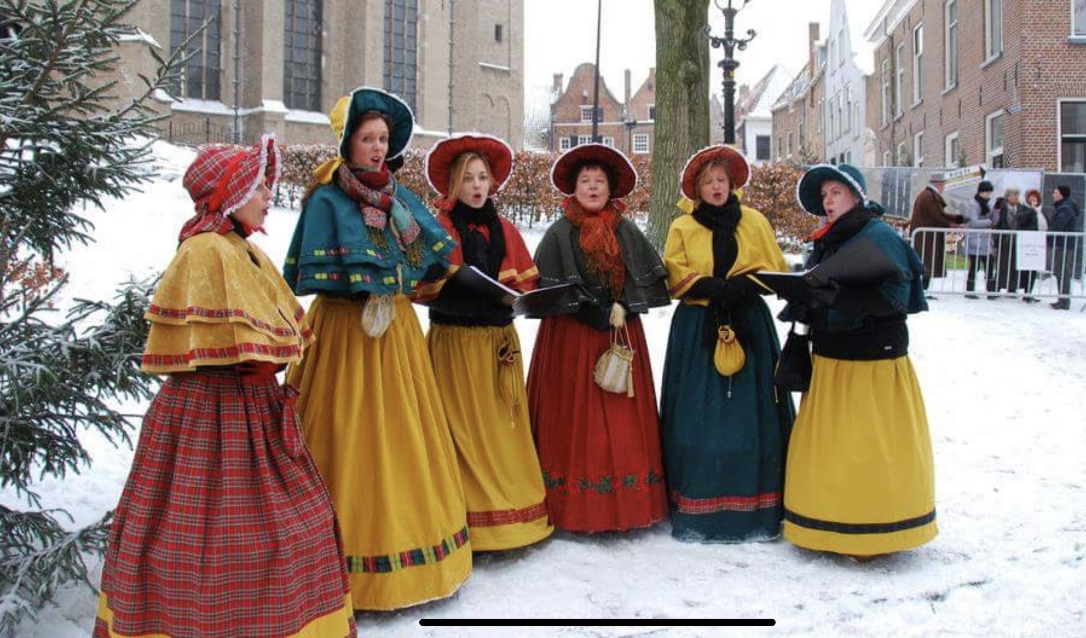 De muziek komt vandaag van een wel heel bijzonder en ‘beeldig’ koortje in Charles Dickens stijl. Op het eerste gezicht lijkt het een standbeeld maar dan ineens zingen ze uit volle borst een bekend kerstlied waarna ze plotseling stilvallen. Een humoristische act voor jong en oud. The Charles Dickens ladies laten in de wandelgangen hartverwarmende Christmas Carols horen zodat iedereen in een opperste kerststemming komt.
